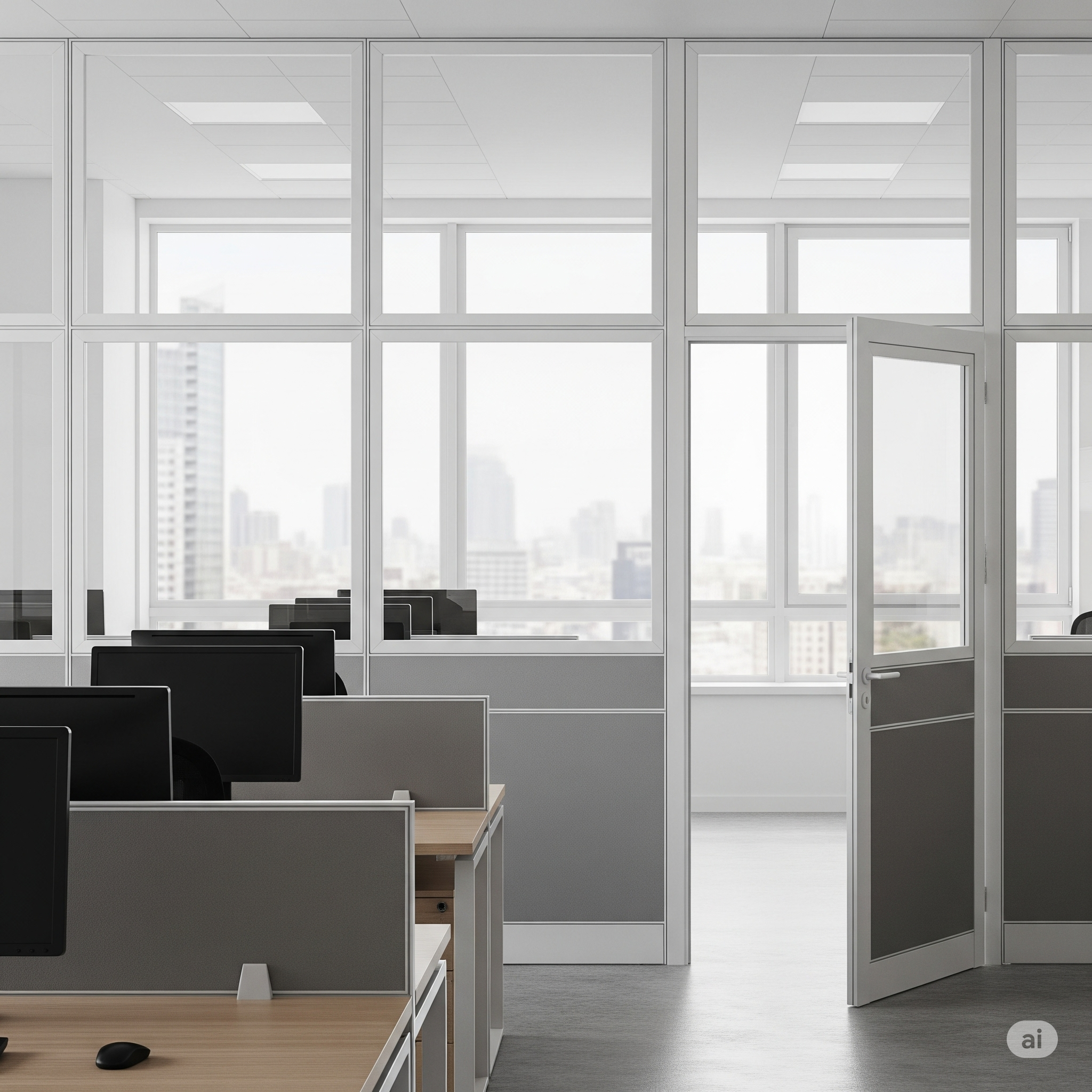 Clean, minimal framing for façades and office partitions—great light, great acoustics.